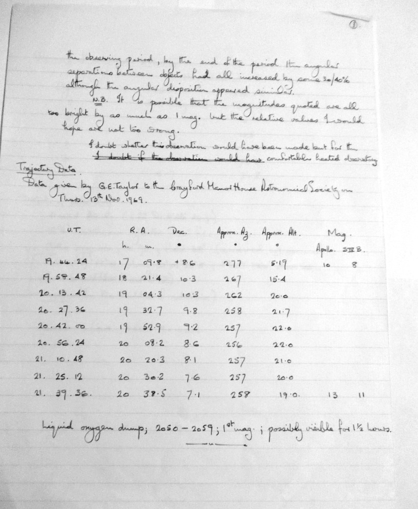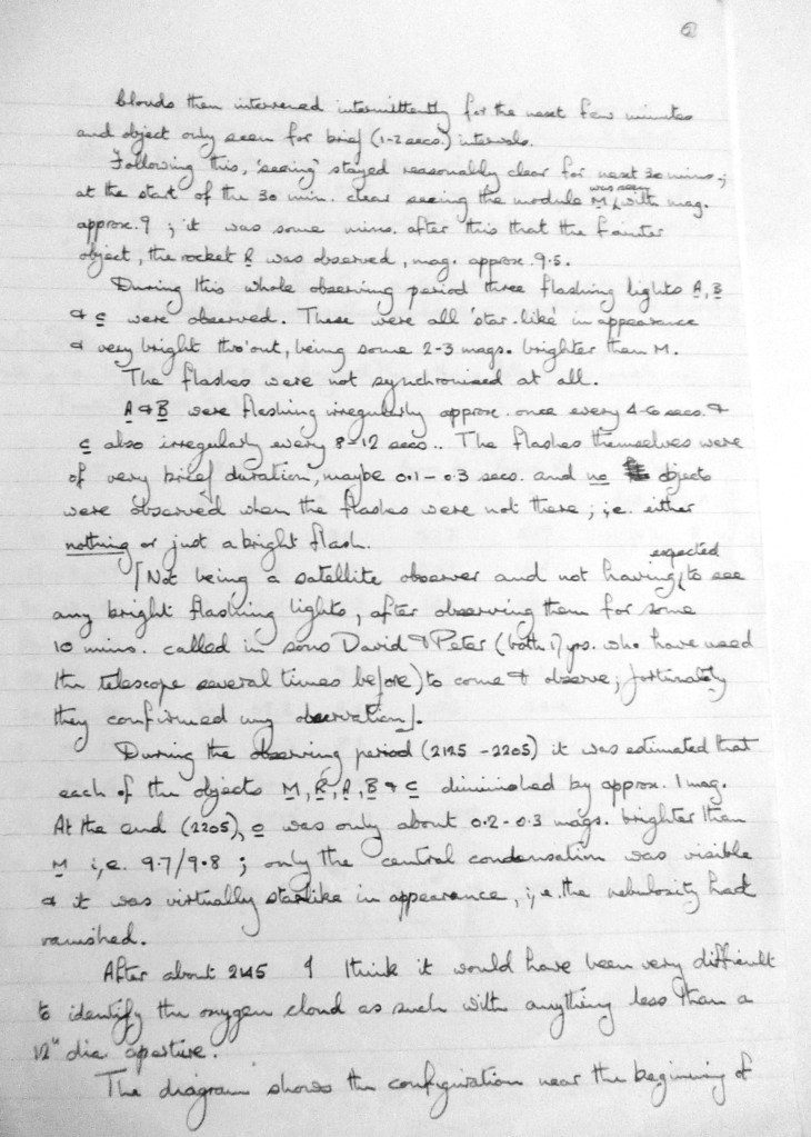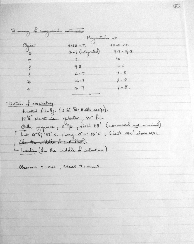 THE OBSERVATION, made by Jack with sons Peter and David (on 14 November 1969, between 21:25 and 22:26 Universal Time), took place less than an hour after these happenings, and is reconstructed in the sketch below, which is based on his extensive notes (unfortunately Jack’s original drawing is lost).