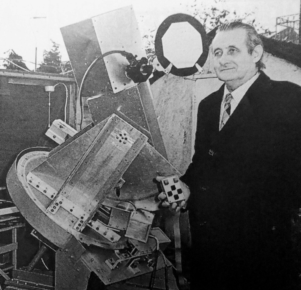 Jack Ells (1927 – 1990), a professional engineer, was an extremely talented amateur astronomer who made several telescopes, one of which is pictured above. Many years earlier, in 1963, he made a Newtonian reflecting telescope, with a 32 cm diameter primary mirror having a focal length of 203 cm. Two examples of his observations with this latter instrument are given here: one of Jupiter, and another of Apollo 12 en route to the Moon.